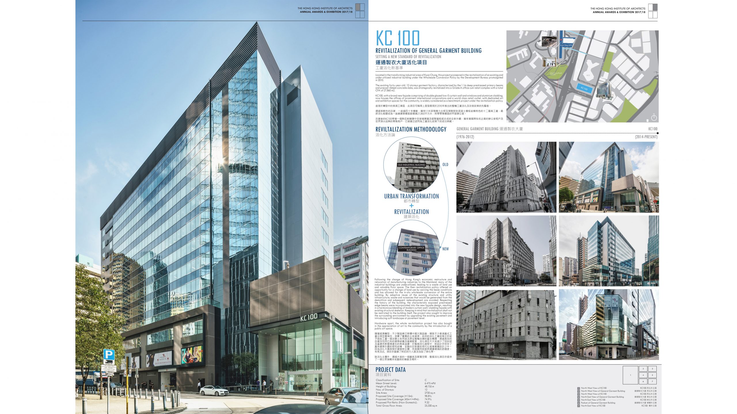 Under the light of recent policy of “Revitalization of Industrial Building”, the existing factory is converted into an office building to suit the demand in the district. To cope with its new nature, substantial alteration is involved in addition to a major façade uplift.