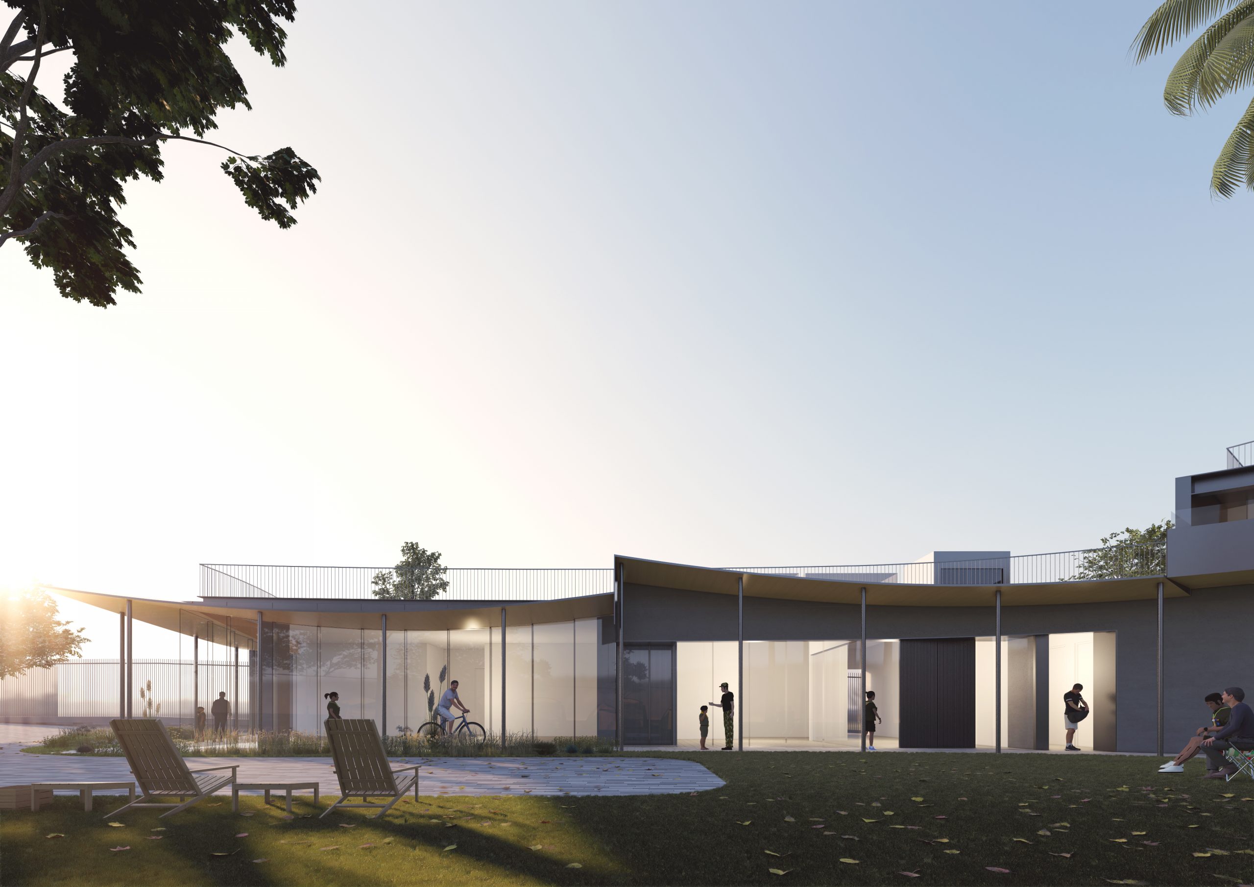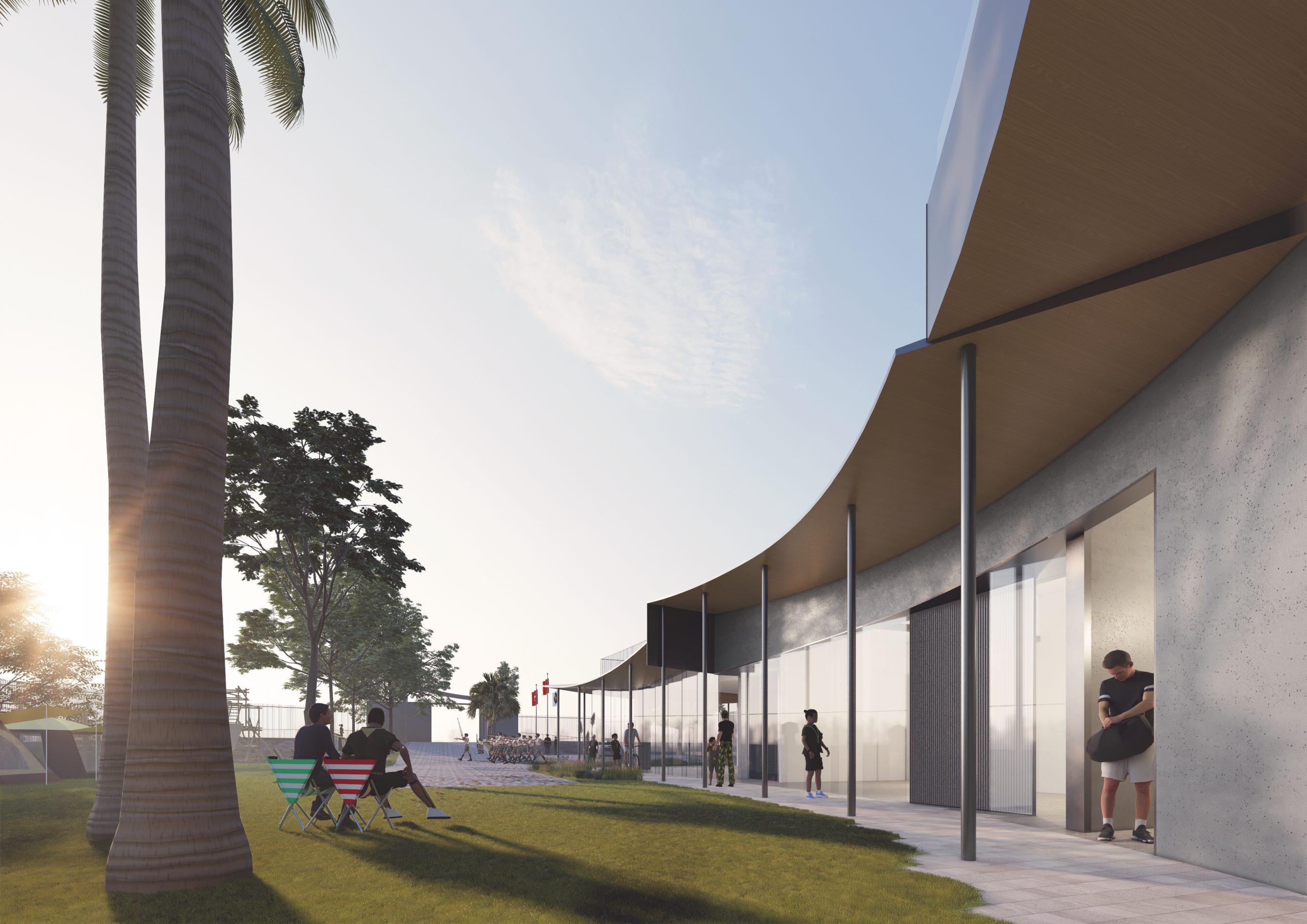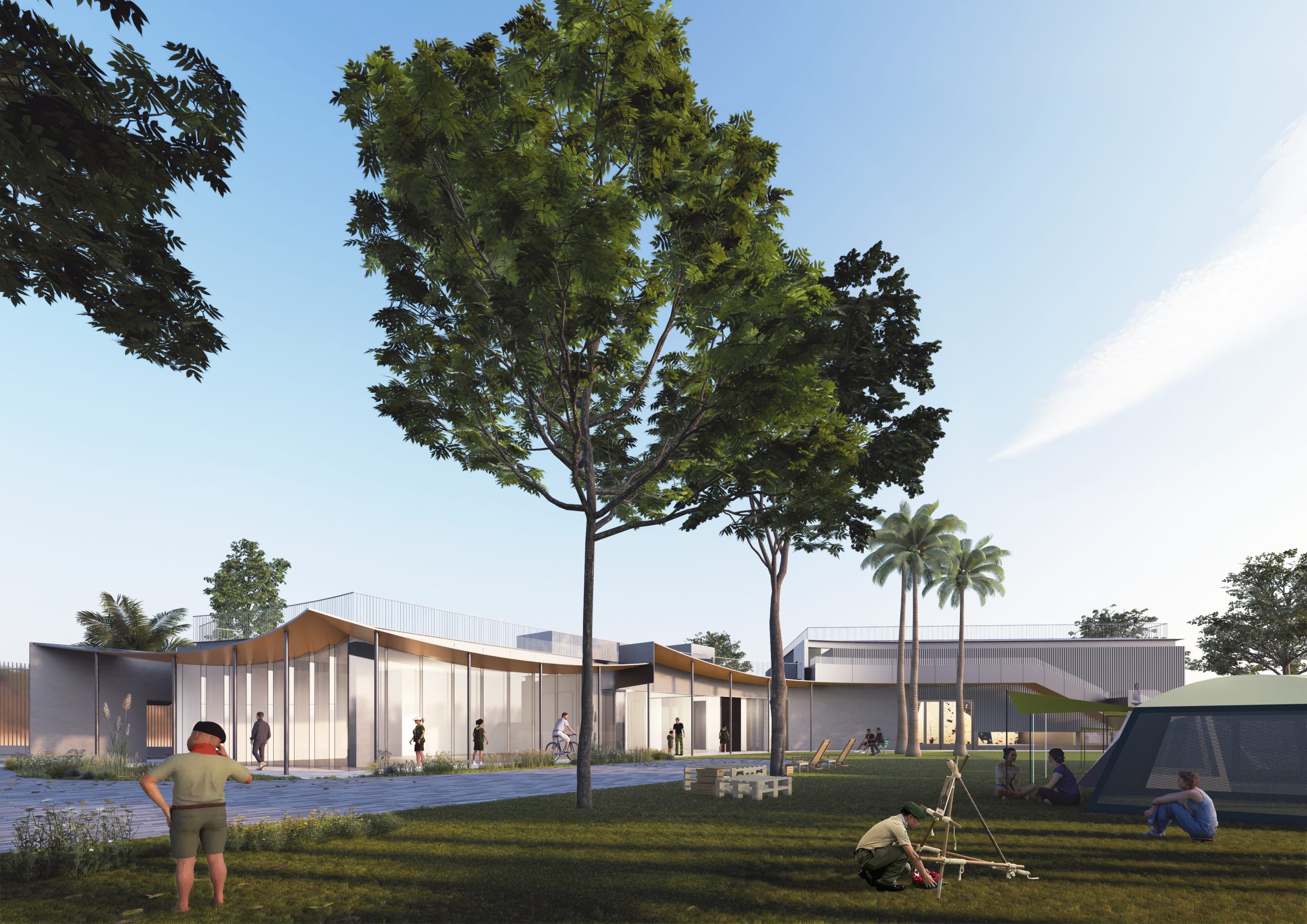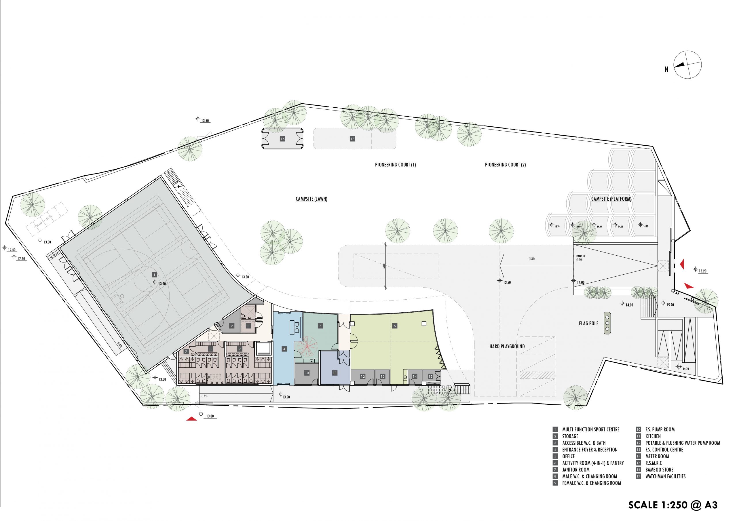 sports hall, training rooms, camping area, changing/shower ancillary facilities, etc.